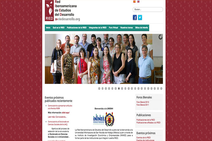 NOTICIAS 06/10/2015Ingresa UMSNH a la Red Iberoamericana de Estudios de DesarrolloLa Universidad Michoacana de San Nicolás de Hidalgo forma ya parte de la Red Iberoamericana de Estudios de Desarrollo (RIED), prestigiada organización que congrega a instituciones de educación superior, centros de investigación y académicos de América Latina y España, que tienen como misión difundir, vincular e impulsar estudios e investigaciones en las diversas áreas del desarrollo económico, social o sustentable.