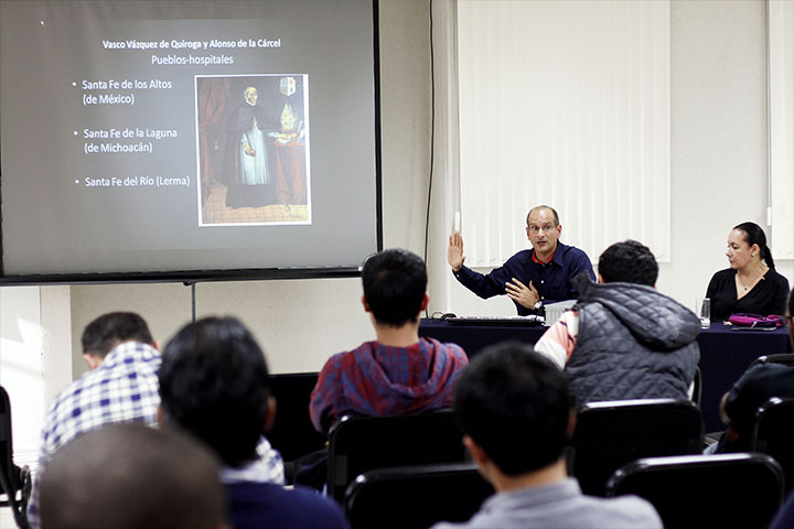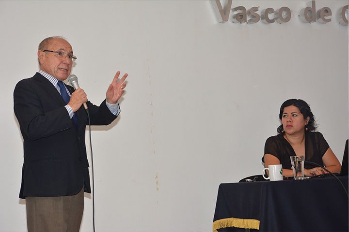 Encabezados por el rector Medardo Serna González, titulares de dependencias administrativas de la Universidad Michoacana de San Nicolás de Hidalgo participaron asistieron a la conferencia disertada por el consultor de la UNESCO en Responsabilidad Social, VÃctor Fiorino, quien además forma parte del Observatorio Regional de Responsabilidad Social de Latino América y el Caribe (ORLASC).