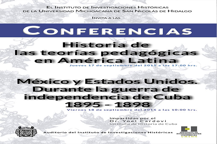Con motivo del Ciclo de Conferencias que se llevan a cabo en el Instituto de Investigaciones Históricas (IIH), de la Universidad Michoacana de San Nicolás de Hidalgo (UMSNH), esta semana visitará en la Casa de Hidalgo el doctor Yoel CordovÃ, del Instituto de Historia de Cuba, con la finalidad de impartir dos conferencias.