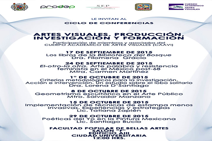 En relación al Ciclo de Conferencias Artes Visuales. Producción, Investigación y Formación, programado para llevarse a cabo durante el mes de septiembre en la Facultad Popular de Bellas Artes (FPBA) de la Universidad Michoacana de San Nicolás de Hidalgo (UMSNH), Salvador Ginori Lozano, director de la institución informó que por motivos ajenos a la Dirección se vio en la necesidad de modificar el programa que ya se tenÃa contemplado.