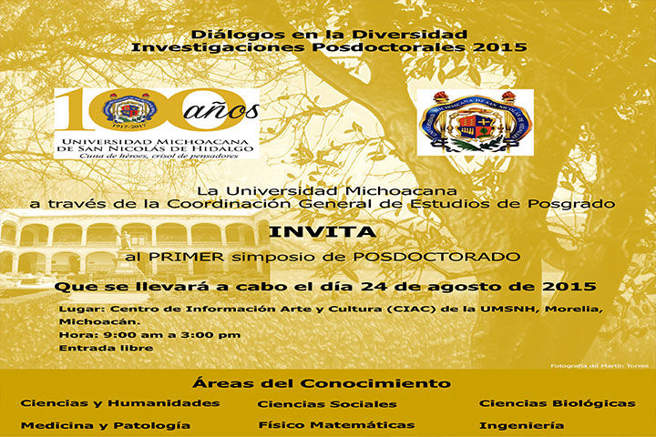 La Coordinación General de Estudios de Posgrado, de la Universidad Michoacana de San Nicolás de Hidalgo (UMSNH), se prepara para realizar la próxima semana el Primer Simposio de Investigaciones Posdoctorales 2015 denominado: "Diálogos de la Diversidad", con el cual se pretende difundir los trabajos de investigación que realizan diversos cuerpos académicos de investigación, en todas las áreas de la actividad cientÃfica.
