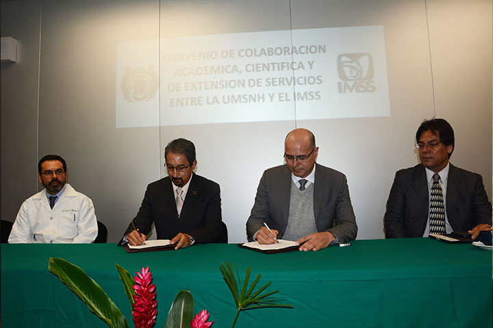 La Universidad Michoacana de San Nicolás de Hidalgo (UMSNH) y el Instituto Mexicano del Seguro Social (IMSS) signaron un convenio de colaboración para fortalecer el desarrollo académico y médico, promover la participación de profesores y estudiantes, así como alentar mediante diversas formas el desarrollo de la docencia e investigación en área de interés mutuo, a través de la formación, capacitación y actualización de recursos a ni... Ver más...
