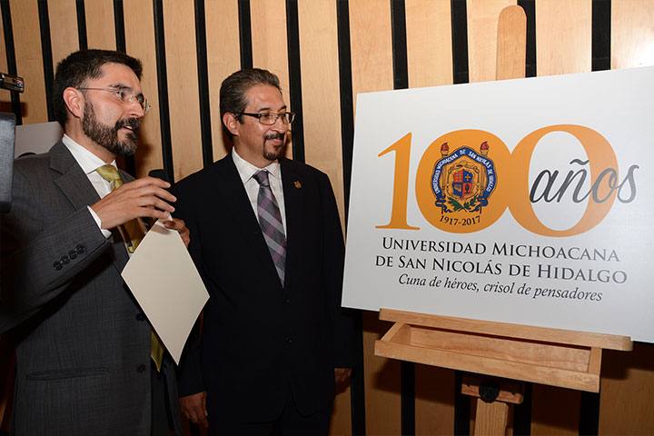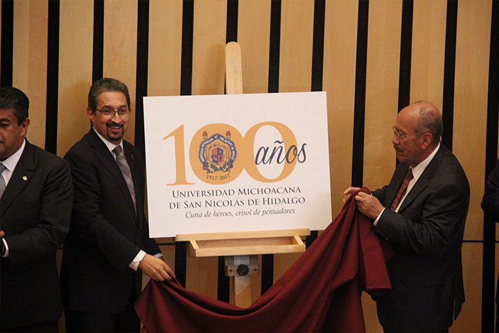 En el marco del centenario de la máxima casa de estudios y Con la finalidad de iniciar con los trabajos para organizar el festejo de la universidad Michoacana de San Nicolás de Hidalgo, se presentó el logotipo alusivo a los 100 años de esta institución educativa.