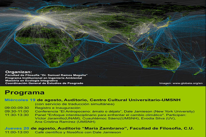 La Facultad de Filosofía "Dr. Samuel Ramos Magaña", el Programa Institucional en Ingeniería Ambiental, la Maestría en Ecología Integrativa y la Coordinación General de Estudios de Posgrado de la Universidad Michoacana de San Nicolás de Hidalgo, presentarán próximamente el ciclo de conferencias denominado: "El Antropoceno y la Nueva Biología de la Conservación".
