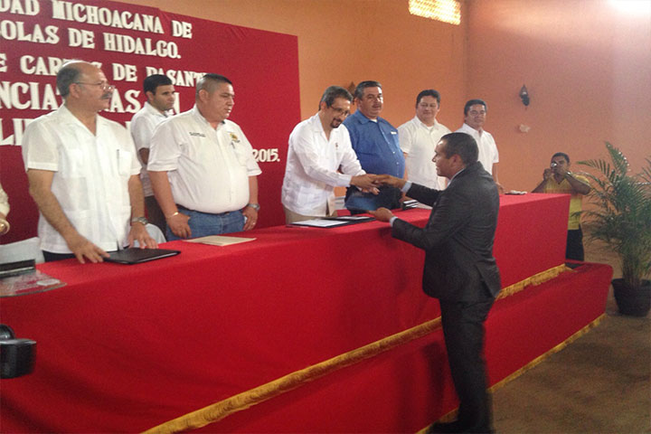 A continuar sus estudios en la Universidad Michoacana de San Nicolás de Hidalgo (UMSNH), instó el coordinador general del Bachillerato Nicolaita, Martín Paz Hurtado, a los 535 egresados del Colegio Primitivo y Nacional de San Nicolás de Hidalgo, integrantes de la Generación 2012-2015, durante el evento en el que recibieron su certificado de estudios.