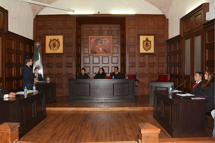 Al continuar con los eventos que realiza la Facultad de Derecho y Ciencias Sociales de la Universidad Michoacana de San Nicolás de Hidalgo, con motivo del CCXVI Aniversario de la Instauración de Estudios de Derecho en Michoacán, se abrió al público la práctica de un juicio oral, en el espacio especialmente diseñado para tal efecto.