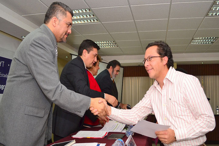 NOTICIAS 19/11/2014Distingue CONACYT a jóvenes investigadores nicolaitas"Para la Universidad Michoacana es una gran oportunidad el contar con estos apoyos, que vienen a detonar tecnología, a permitir y a coadyuvar con una generación del conocimiento, en proyectos específicos que se han presentado por parte de Nuestra Máxima Casa de Estudios" expresó el Maestro David Rueda López, Secretario Académico de la Universidad Michoacana de San Nicolás de Hidalgo (UMSNH), durante la entrega de Constancias de participac... Ver más...