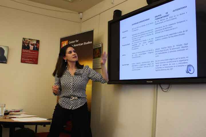 NOTICIAS 06/04/2014Investigadora nicolaita presenta conferencia en Universidad de California La profesora e investigadora de la Universidad Michoacana de San Nicolás de Hidalgo (UMSNH), Lorena Ojeda Dávila, presentó la conferencia: "Comunidades en armas. El desafÃo mexicano del siglo XXI", en la Universidad de California en Berkeley.