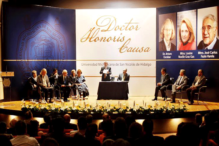 NOTICIAS 15/03/2014Entregan en la UMSNH Doctorados Honoris CausaEl rector de la Universidad Michoacana de San Nicolás de Hidalgo (UMSNH), Salvador Jara Guerrero, entregó a nombre del H. Consejo Universitario el grado de Doctor Honoris Causa a Arturo Escobar, José Carlos Fazio Varela y Louise Noelle Gras Gas, en sesión solemnre efctuada en el Centro Cultural Universitario.