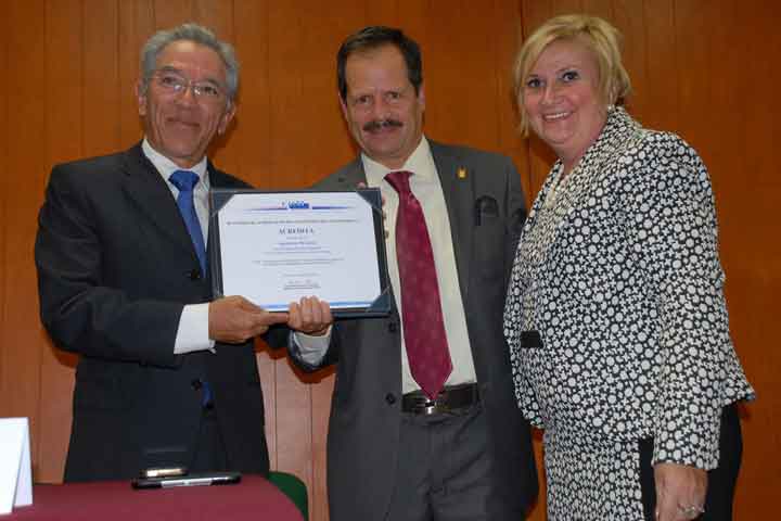 La Directora General Interina del Consejo de Acreditación de la Enseñanza de la Ingeniería (CACEI), Ma. Elena Barrera Bustillos, al entregar el nuevo documento de acreditación del programa de licenciatura de la Facultad de Ingeniería Mecánica, clarificó que esto implica cumplir con altos estándares de evaluación: "hay 5 mil 400 programas de ingeniería en México y sólo 900 han recibido este reconocimiento, esto es, menos de la quinta... Ver más...