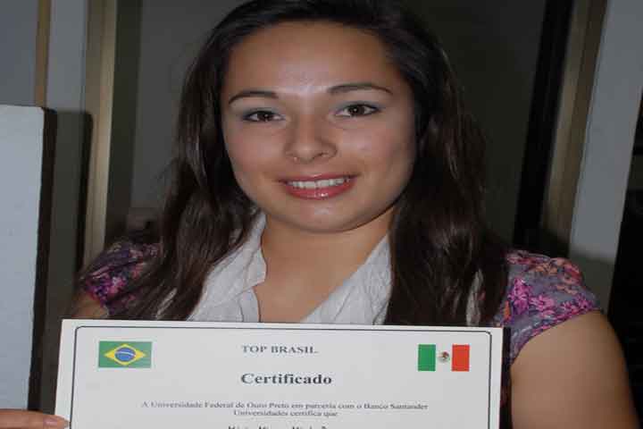 La alumna Mónica Minerva Méndez Pozos de la Facultad de Psicología de la Universidad Michoacana de San Nicolás de Hidalgo (UMSNH) se hizo acreedora a la beca "Top Brasil Santander Cumex 2013", otorgada como parte de los programas de movilidad estudiantil con los que cuenta la Máxima Casa de Estudios en la entidad.