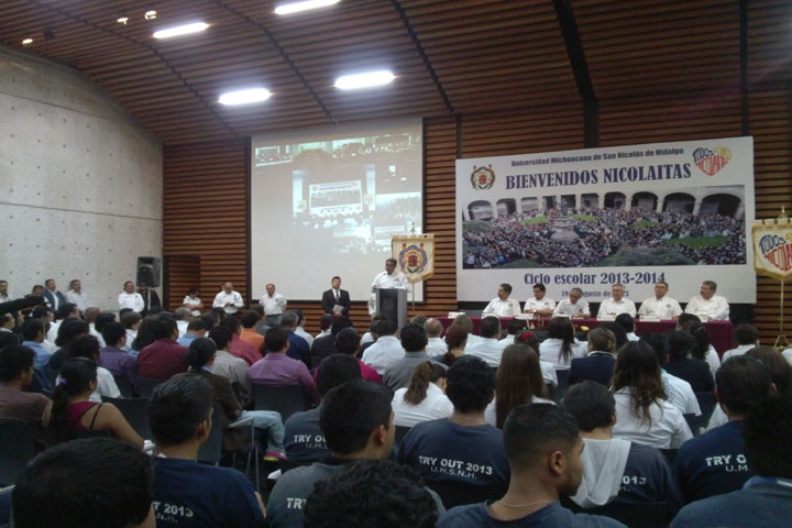 La Universidad Michoacana de San Nicolás de Hidalgo arrancó el ciclo escolar 2013 -2014 de manera simultánea en sus diversos campus y nodos de educación a distancia, por lo que este día cerca de 57 mil estudiantes nicolaitas regresaron a clases.