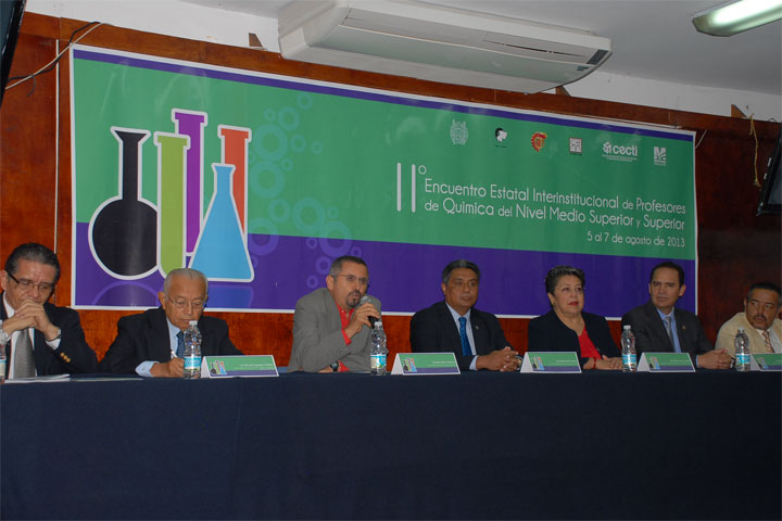 La Universidad Michoacana de San Nicolás de Hidalgo realizó el décimo primer Encuentro Estatal Interinstitucional de Profesores de Química de los Niveles Medio, Superior y Superior, con el objetivo de lograr una mejor difusión de la Química ante el recorte de currícula que presenta esta asignatura en materias optativas y ante la deserción escolar.