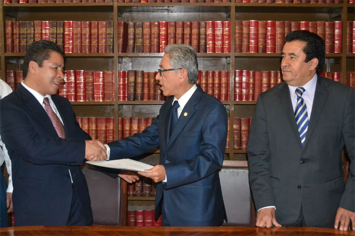 El Secretario General de la Universidad Michoacana de San Nicolás de Hidalgo (UMSNH), Egberto Bedolla Becerril, entregó a nombre del Rector de la Casa de Hidalgo, Salvador Jara Guerrero, el nombramiento como Jefa del Departamento de Idiomas, a la Contadora Pública Leticia Marisela Cantón Gasca.