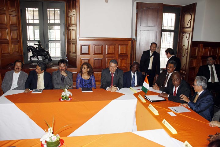 NOTICIAS 18/02/2013Intercambio académico y cultural con Costa de MarfilCon el objetivo de concretar un intercambio académico que favorezca el impulso binacional de la ciencia, el arte, el desarrollo social y agropecuario, el rector de la Universidad Michoacana de San Nicolás de Hidalgo (UMSNH), Salvador Jara Guerrero, se reunió con el embajador en México de Costa de Marfil, Marcellin Obou Abie.