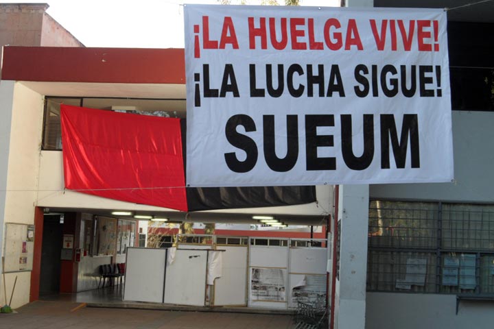 NOTICIAS 15/02/2013Rompen diálogo SUEUM y Autoridades Nicolaitas entorno a la huelga A un mes de huelga, el Sindicato Único de Empleados de la Universidad Michoacana (SUEUM) rompió el diálogo con la autoridad universitaria, toda vez que el Consejo General de Huelga tomo esta decisión después de que el rector enviara la propuesta de realizar algunas modificaciones a su Contrato Colectivo de Trabajo.