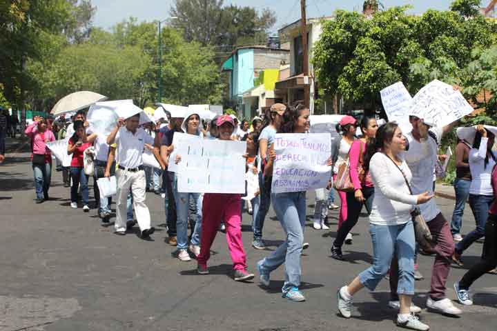 En estos momentos la movilización avanza por la calle Cuautla. Algunos padres de familia acompañan esta marcha.