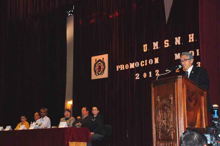 La Universidad Michoacana de San Nicolás de Hidalgo no sólo forma buenos médicos, sino también con un gran compromiso y conciencia social, afirmó el rector Salvador Jara Guerrero, al dar su mensaje a los 831 estudiantes de la Facultad de Ciencias Médicas y Biológicas "Dr. Ignacio Chávez", que ofrecerán su servicio social en el perÃodo 2012-2013.