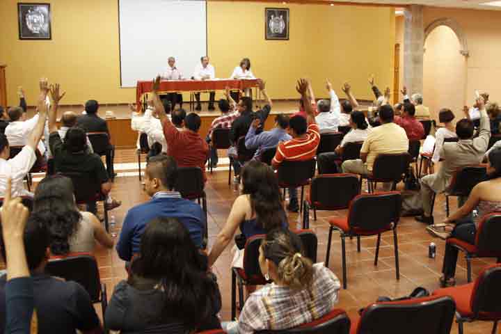 NOTICIAS 30/05/2012Integran Comisión de Consejo Universitario para determinar procedimientos de sanción a paristasEl Consejo Universitario integró una comisión para llevar a cabo el procedimiento de sanción a las personas que paralicen las actividades en la Universidad Michoacana; de manera inmediata, realizaron un apercibimiento a profesores y alumnos de la Facultad de Ingeniería Eléctrica que mantienen tomada la Ciudad Universitaria, para que desocupen las instalaciones a la brevedad.