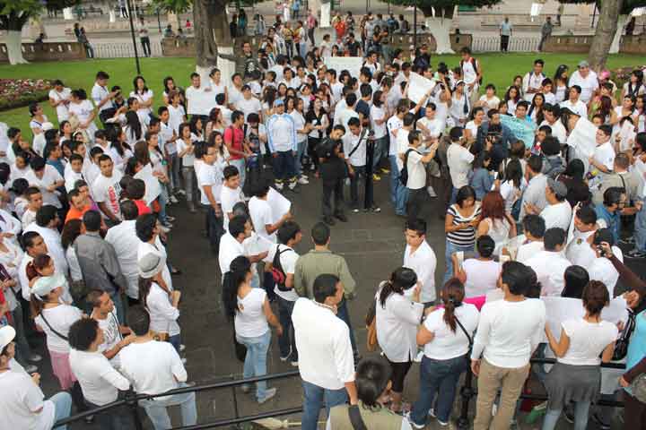 NOTICIAS 16/05/2012"Queremos clases y no más tomas", exigen estudiantes de la UMAl grito de "Fuera CUL", "Nomás tomas" y "Queremos clases", al menos media de centena de alumnos de la Universidad Michoacana respondieron a la convocatoria lanzada a través de la red social Facebook para salir a marchar por el primer cuadro de la capital michoacana, a fin de exigir la liberación de las instalaciones de la máxima casa de estudios en la entidad, que desde hace más de una semana mantienen tomadas integrantes de la Coordinador... Ver más...