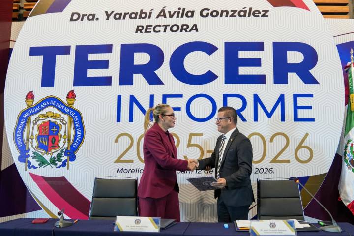 NOTICIAS 12/01/2026La Universidad Michoacana está firme, con rumbo y futuro sustentable: Yarabí Ávila"La Universidad Michoacana de San Nicolás de Hidalgo (UMSNH) que recibimos estaba de pie, pero tambaleante. La Universidad que hoy presentamos está firme, con rumbo y futuro sustentable", afirmó la rectora Yarabí Ávila González, al presentar su Tercer Informe de Actividades ante el Consejo Universitario.